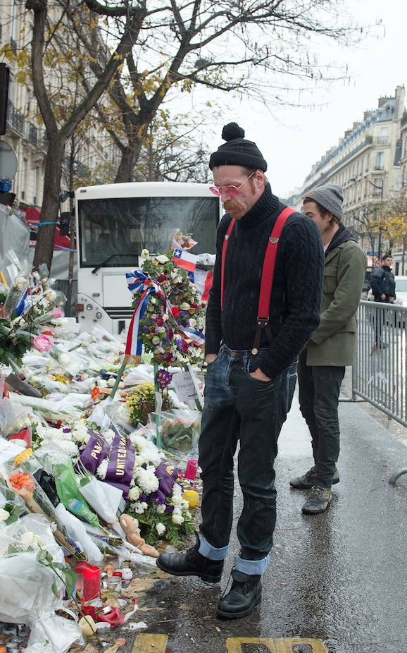 The Californian band members were clearly moved by floral tributes and messages left outside the building, where 90 people died in the worst atrocity of the November 13 attacks on the city.