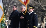 A 19-gun salute boomed out over thousands of white stone war graves, some still with Christmas wreaths.