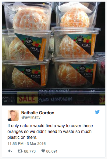 Her tweet about the skinless citrus has since gone viral, attracting more than 80,000 retweets.