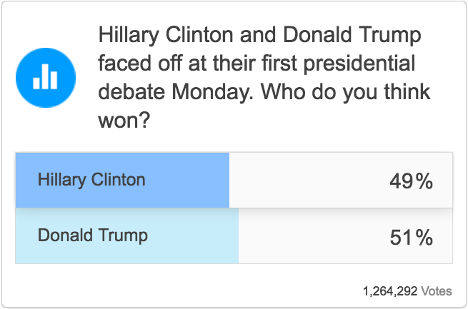 The online polls of many large media websites disagreed, with most naming Mr Trump as the victor, nine hours after the debate.