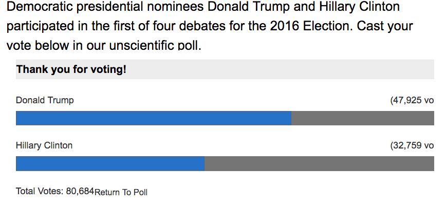 The trouble for the Democratic candidate is that many of the online polls did not agree.
