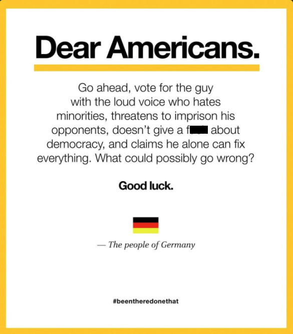 “Go ahead, vote for the guy with the loud voice who hates minorities, threatens to imprison his opponents … What could possibly go wrong?”