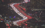 Incredible aerial footage has shown kilometres of gridlocked traffic in the Los Angeles area on the 405 motorway, one of the busiest routes in the United States.