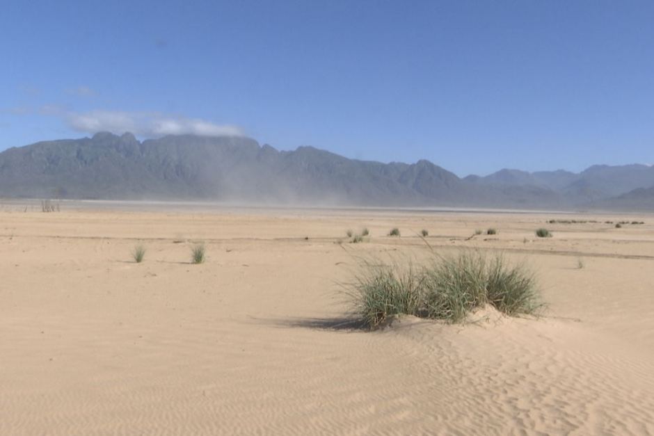 Theewaterskloof dam looks more like a desert. Dust swirls where water should be. The photographs of this place have become the dominant image of the drought in South Africa’s Western Cape.