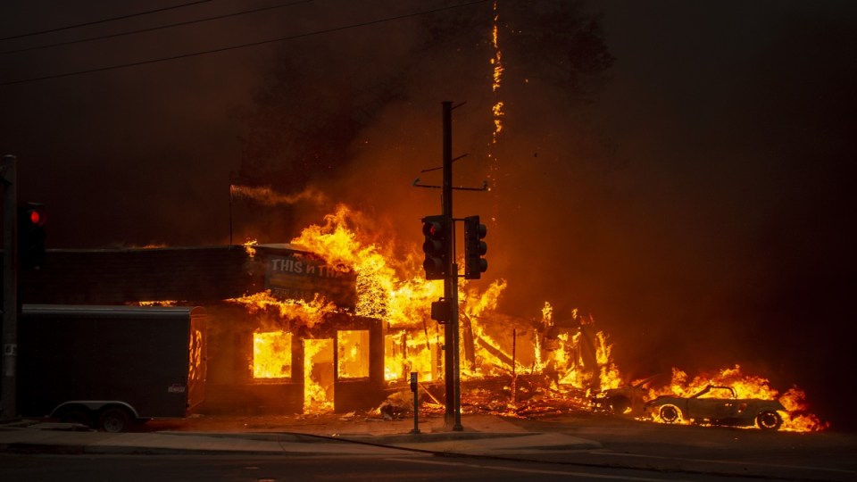 In the north of the state, one wildfire incinerated most of a town of 30,000 people where flames moved so quickly firefighters and emergency services were left helpless.