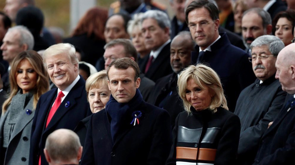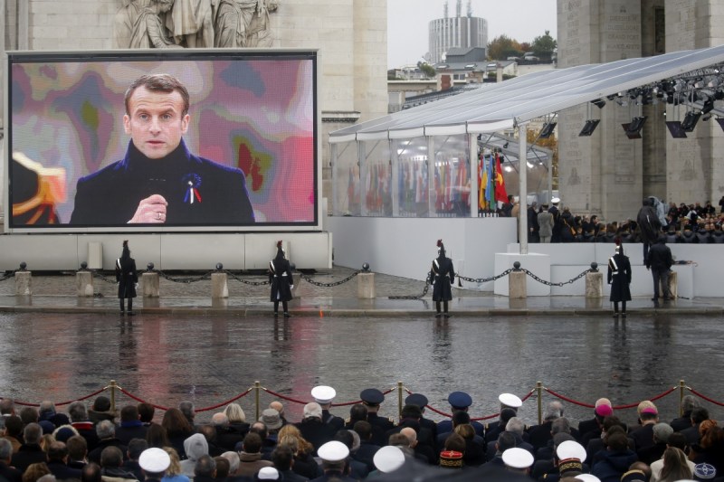 Mr Macron warned the “old demons” of nationalism still threatened world peace.