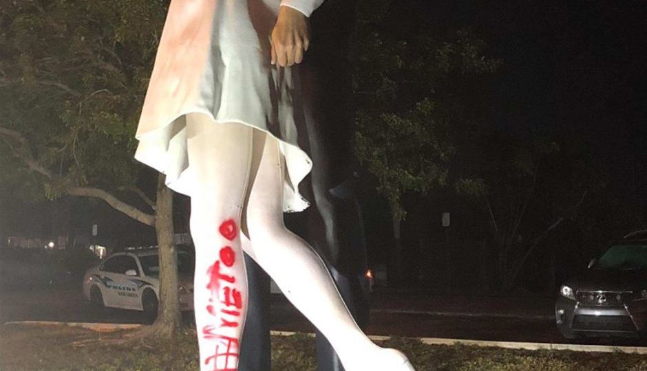 A statue depicting the moment a US sailor kissed a woman in New York’s Times Square at the end of World War II has been defaced with graffiti reading #MeToo.