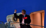 He had left Washington on Monday afternoon on Air Force One flying eastwards and made refuelling stops in England and Qatar.