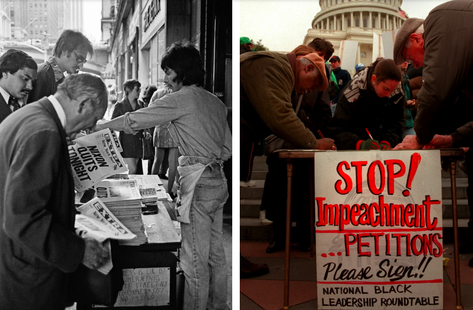 More than a century later, Nixon’s near-impeachment in 1974 was the climax of a decade of social upheaval — the assassinations of John F. Kennedy, Robert F. Kennedy and the Rev. Dr. Martin Luther King Jr., the civil rights movement, the Vietnam War, women’s liberation, the sexual revolution and finally the Watergate scandal. With the country roiling, Nixon resigned before the House could vote on articles of impeachment.