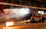 Police then asked organisers to call off the march early and crowds eventually dispersed as a water cannon truck and scores of police in riot gear patrolled the streets late into the evening.