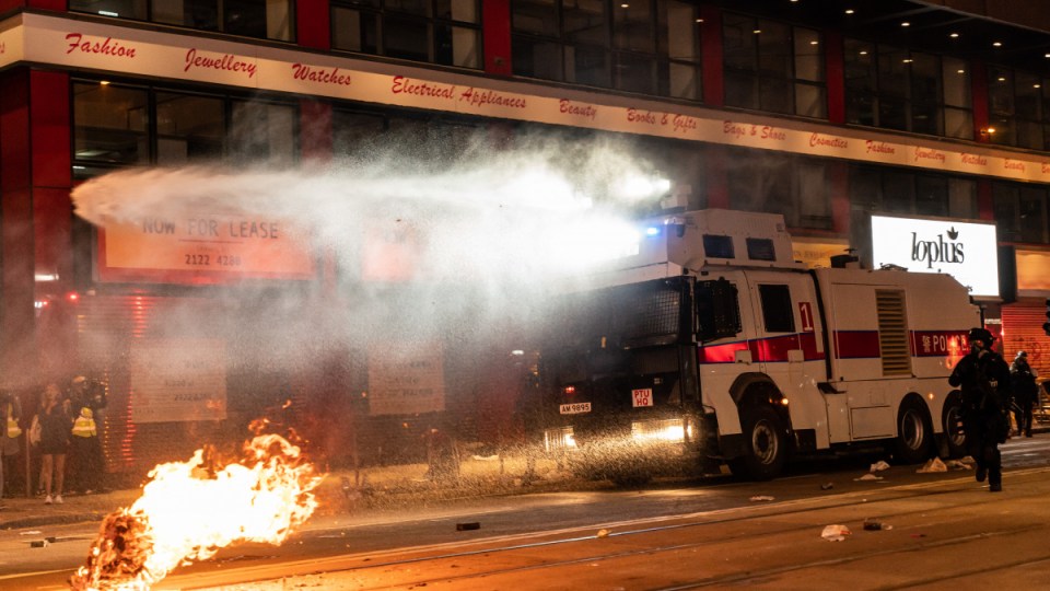 When scuffles broke out, large numbers of black-clad protesters rushed to the scene while other protesters formed human chains to pass them various supplies including bricks, forcing police to bring in their own reinforcements.