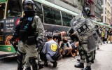 A 15-year-old girl who was waving a Hong Kong independence flag was among those handcuffed and taken away by riot police.