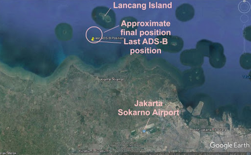 Sonar equipment located the wreckage of Sriwijaya Air Flight 182 which appears to have suddenly plunged 3000m in less than a minute, according to flight tracking website Flightradar24.com.
