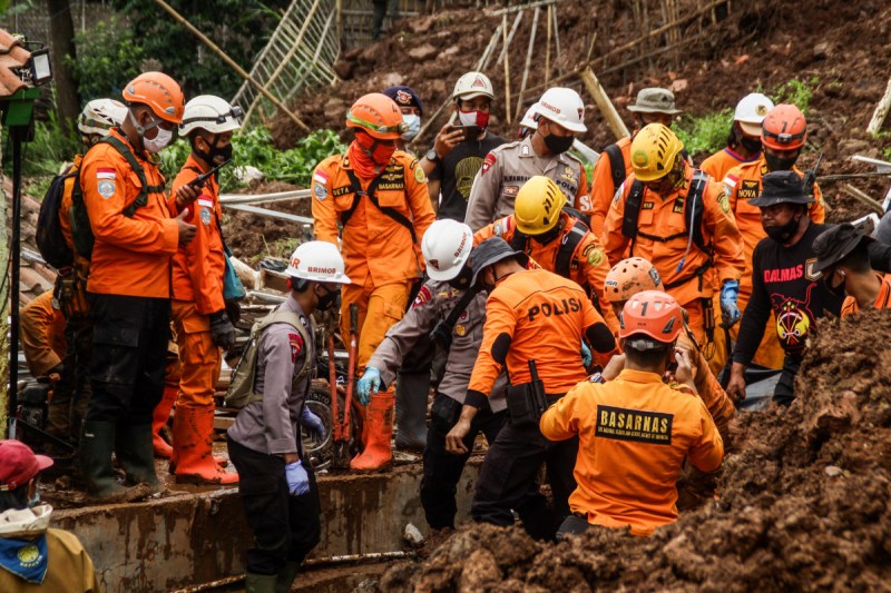 Rescuers were searching for survivors and evacuating residents after a landslide in Cihanjuang village in the Sumedang district of West Java province when they were buried.