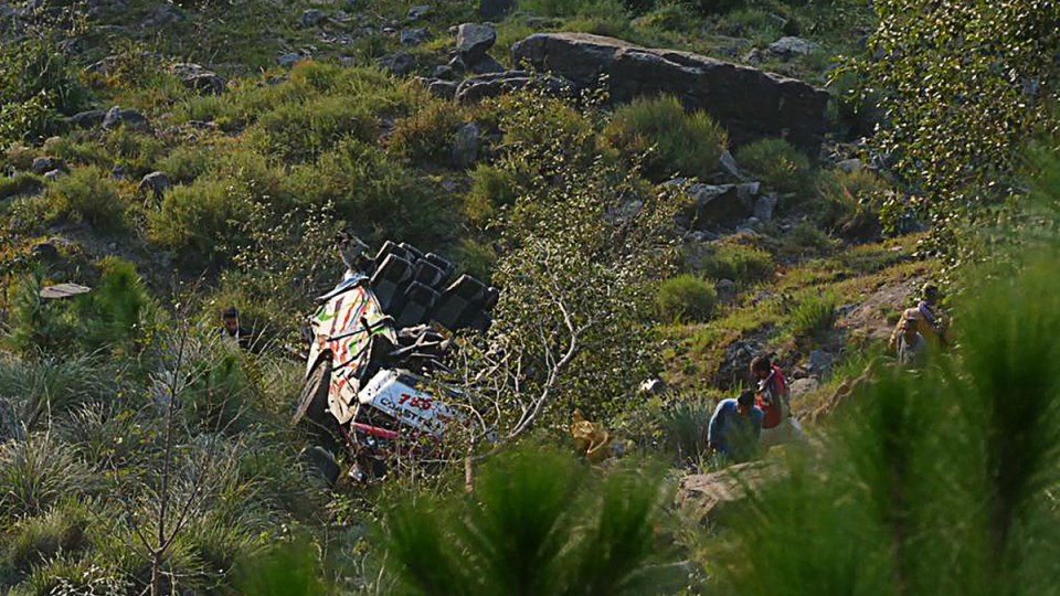 Police officer Rashid Naeem Khan said the bus had been heading for the garrison city of Rawalpindi when it went out of control as it passed along the road carved out of the mountainside above the river Neelum.