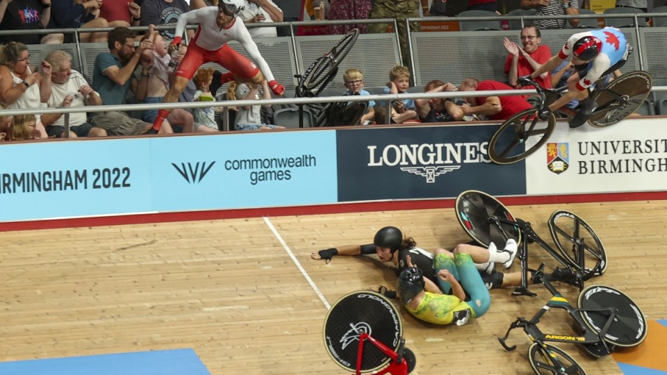 Nuts #velodrome #crash #cycling #CommonwealthGames pic.twitter.com/KkPxZzSjhC
