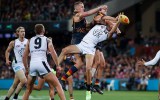Carlton’s pressure was non-existent, highlighted by Taylor Walker pushing off Lewis Young at 50 metres after he marked and then turning to kick a booming goal.