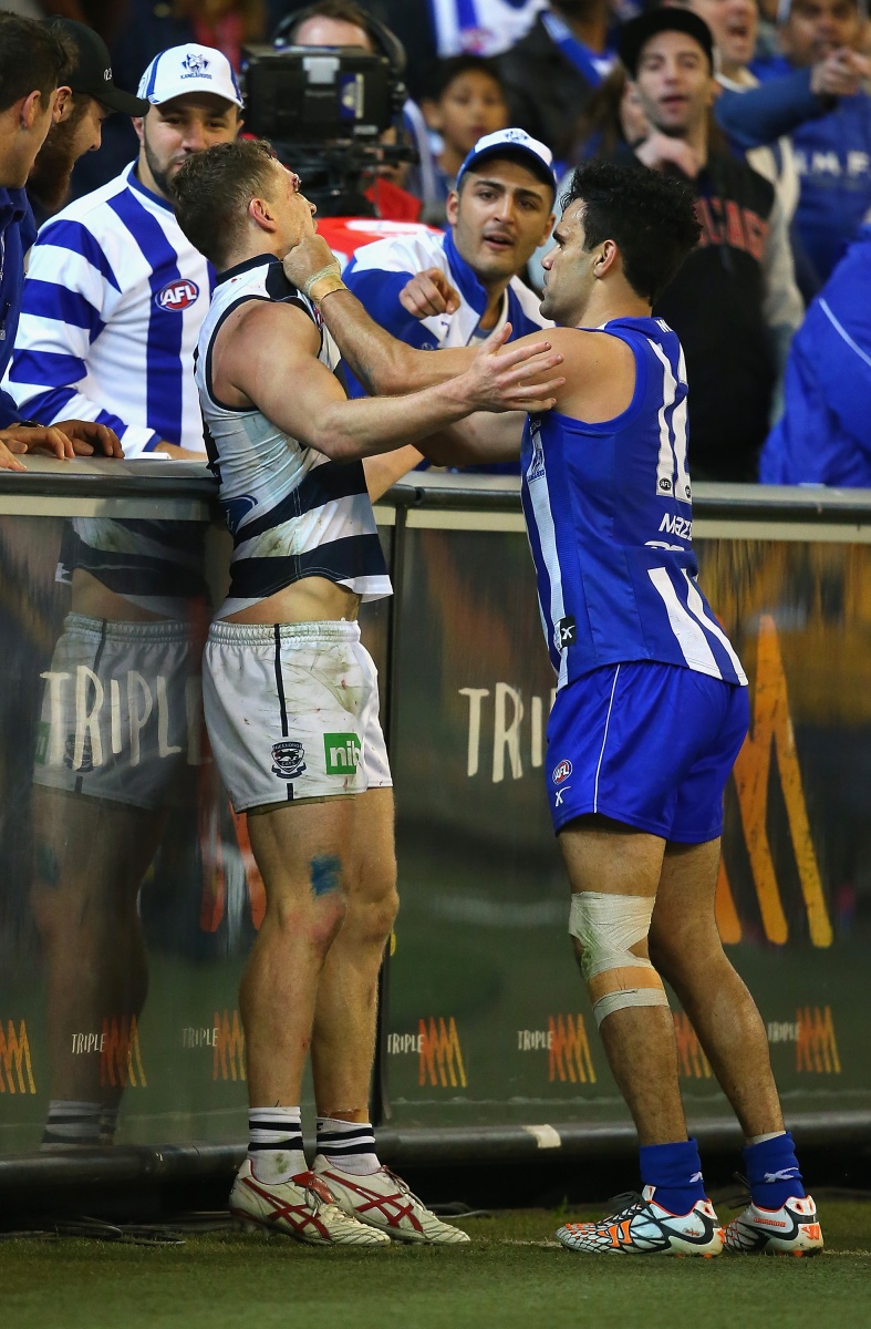 The Cats stopped North’s momentum however with three late goals including one after the siren to Tom Hawkins to reduce the margin to 12 points at the first break.