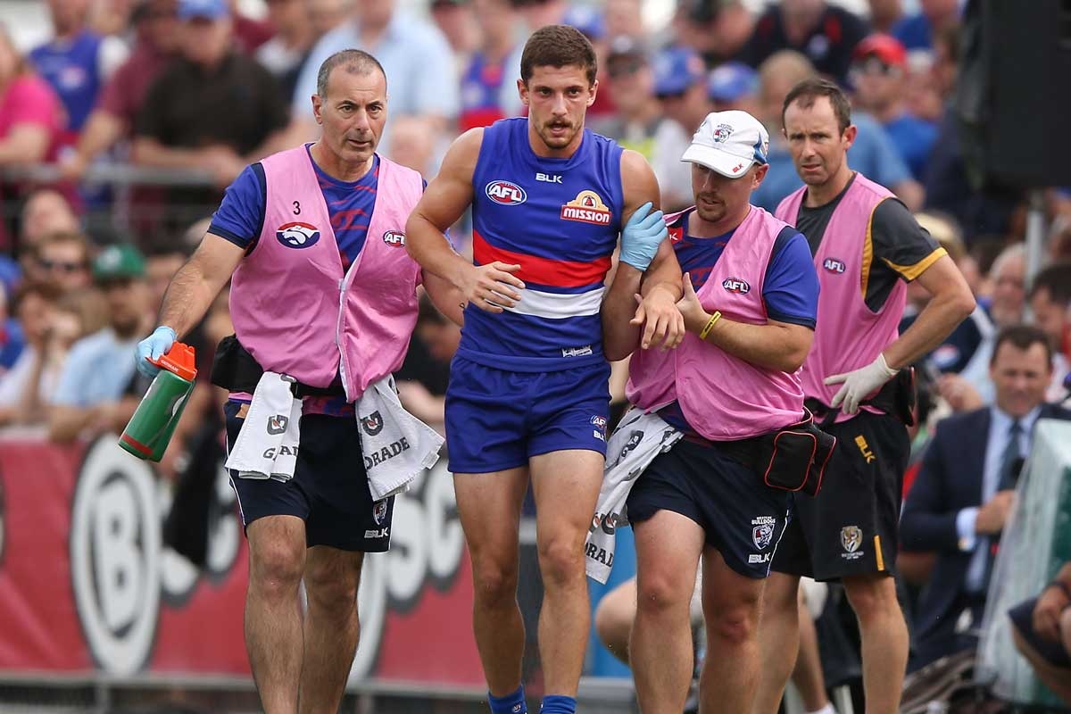 The 22-year-old took no further part in the game and coach Luke Beveridge later confirmed that club medical staff feared he had ruptured the anterior cruciate ligament.
