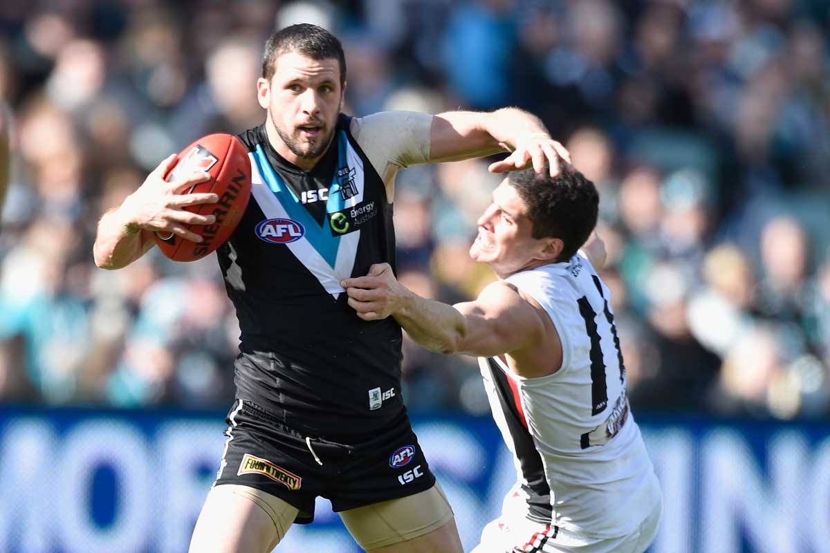 Port’s defenders, led by Jack Hombsch who kept Josh Bruce goal-less until he scored after the final siren, applied a strangle on St Kilda’s attackers, with midfielder Leigh Montagna (two goals) the visitor’s sole multiple goalscorer.