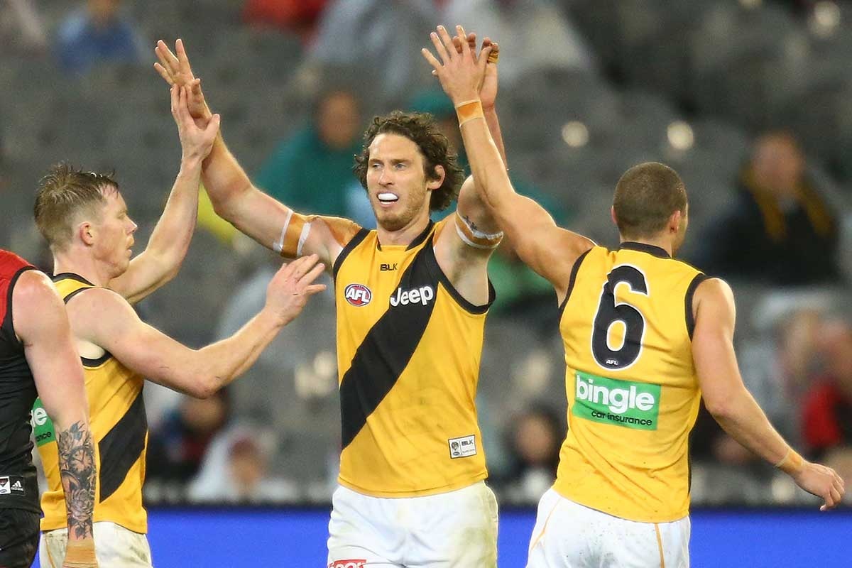 With the game almost over, Courtenay Dempsey slung Brett Deledio head-first to the turf in a scary tackle that will surely draw the attention on the match review panel, but the influential Tiger was at least able to leave the ground under his own steam.