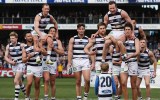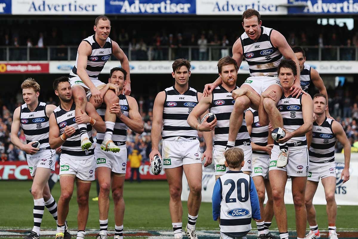 Steve Johnson, James Kelly and Mathew Stokes were chaired from the ground on Saturday by their Cats teammates, ending celebrated careers totalling 715 games and eight premierships.