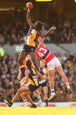 West Coast like to get the ball forward from centre bounces and then lock it in. Naitanui is a strong part of this.