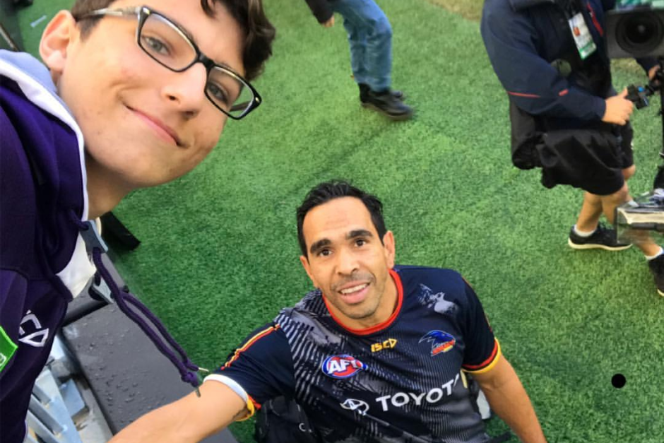 The Indigenous footballer took a selfie with a Fremantle Dockers fan following the game at Perth’s new stadium and posted: “I have time for everyone”.