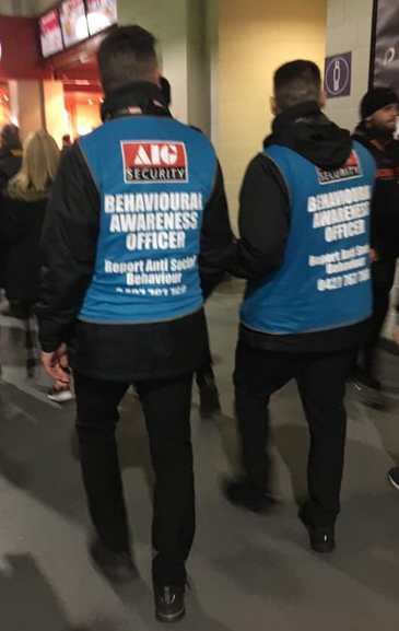 With some Marvel Stadium staff wearing ‘behavioural awareness officer’ vests there had been little explanation about what training these employees have had to designate their role.
