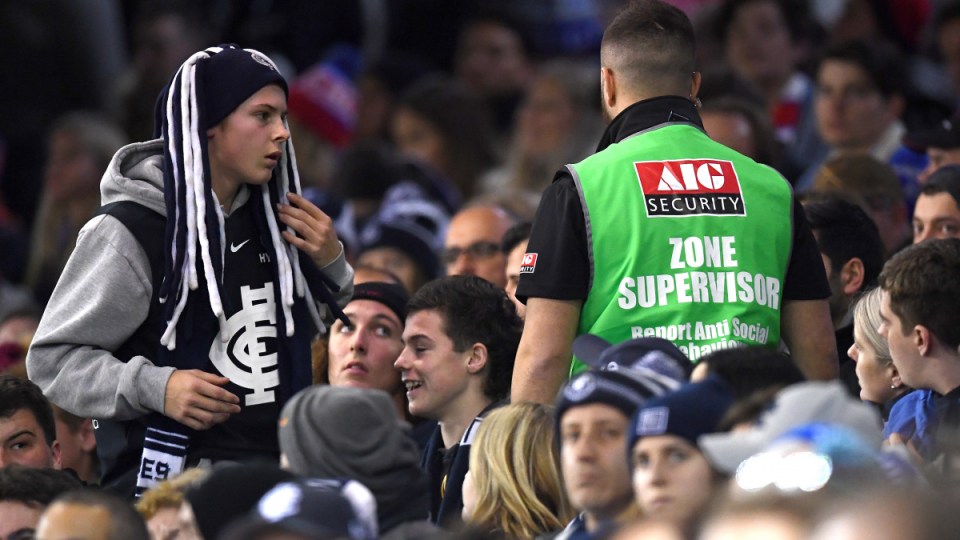 The sight of Marvel Stadium security types stalking the terraces on Friday and Saturday night may have sent a signal that the AFL is serious about policing crowd behaviour, but it also may be over before it was even officially a thing.