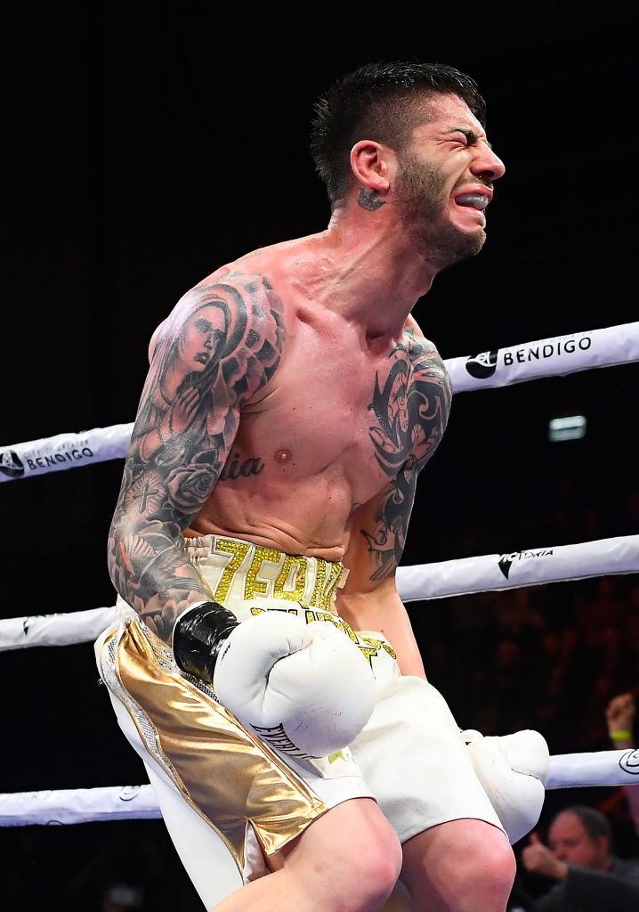 He was finished off in the ninth round when a barrage of shots following the knockdown prompted the referee to halt the bout at Bendigo Stadium.