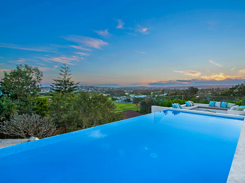 The exterior boasts a wet-edge, heated infinity swimming pool with stunning ocean views, a built-in barbecue, a Travertine terrace and an alfresco dining area made for hosting.