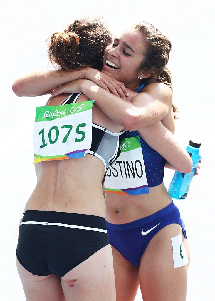 Hamblin gave up any chance of chasing the main pack, which included Australians Eloise Wellings and Genevieve LaCaze, and instead waited until the hobbling D’Agostino could continue the race, as the sparse crowd at the Olympic Stadium rose to their feet and applauded.