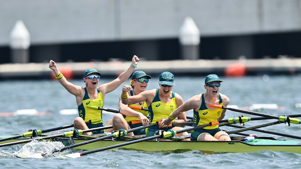 Australian rowers are on top of the world with the men’s and women’s coxless four crews both winning Olympic gold while the quad sculls both claimed bronze.