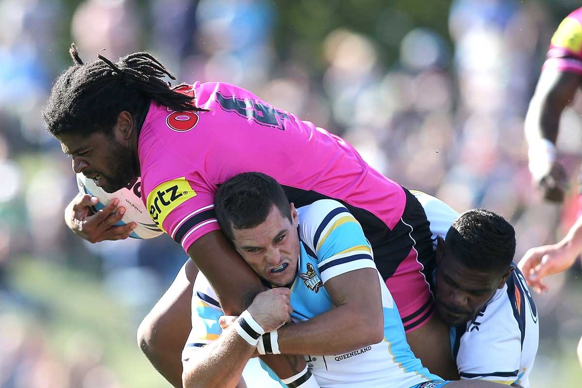 Like most of his team, the hulking centre was untroubled by the Titans as he ran in the opener in the 21st minute before his centre partner, Dean Whare, crossed in the 28th, allowing Penrith to take a slim 8-0 lead to the break.