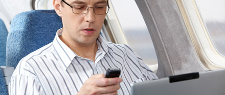 Load music onto an iPod or MP3 player, and keep your phone off for the flight so it’ll have plenty of juice when you land.