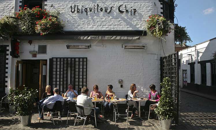 Head to the lush greenery of the city’s West End, revolving around the gorgeous Kelvingrove Park and the impressive University of Glasgow up on Gilmorehill, and the best spot for a fancy feed is Ashton Lane’s Ubiquitous Chip. Resembling a sort of indoors/outdoor starlit courtyard, complete with actual trees and running water, it’s magical and