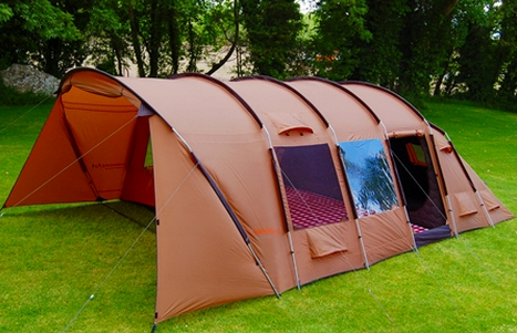 The largest, six person ‘tunnel’ tent has the fully insulated sleeping quarters divided into two rooms (two and four berth), each with its own door.