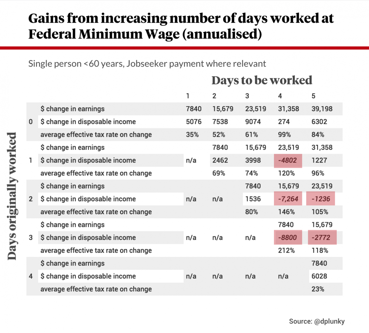 Their gross pay would rise by $7840 over the year, but they would receive $8800 less as JobSeeker payments were cut.