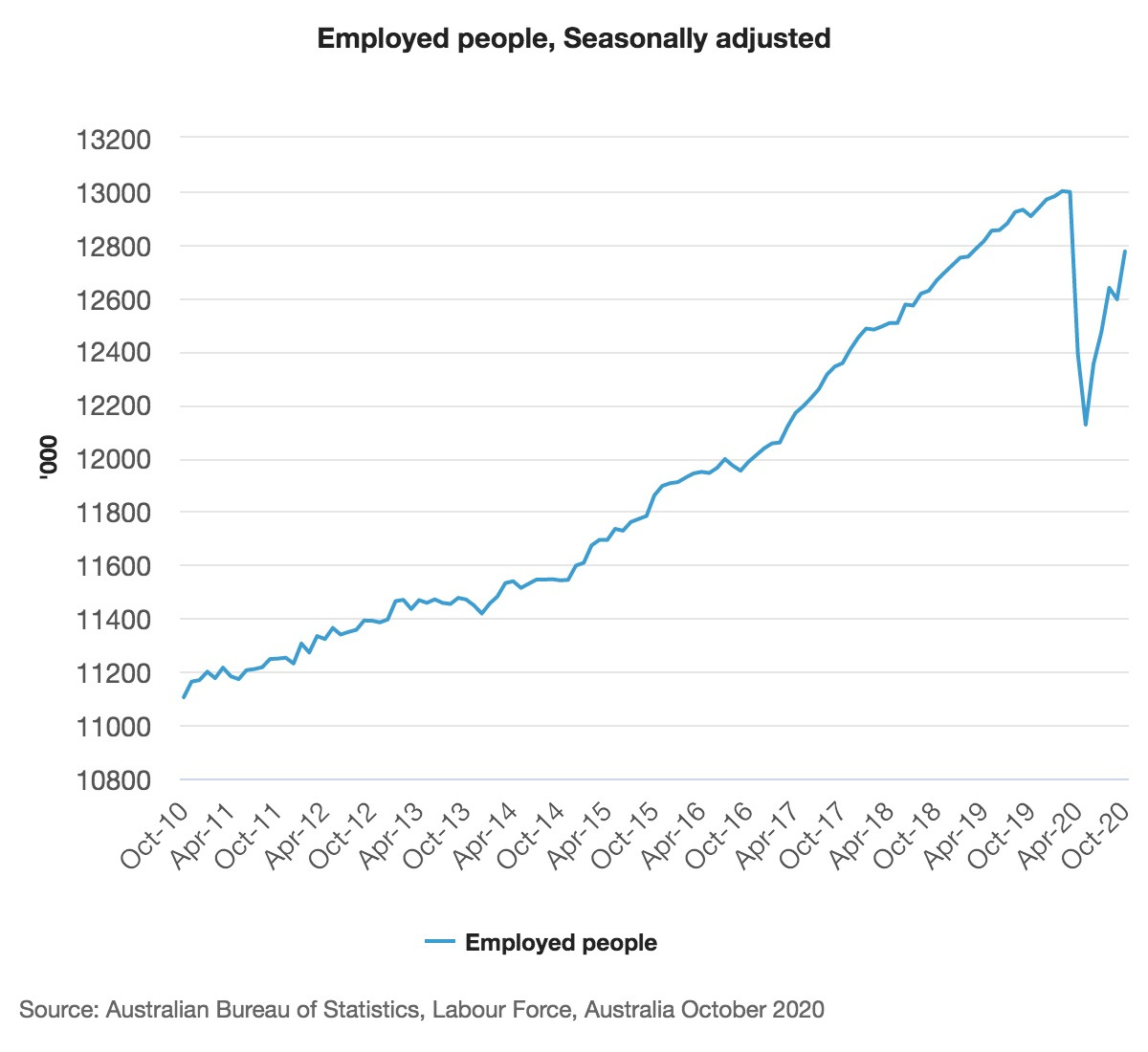 The latest unemployment figures released by the Australian Bureau of Figures on Thursday showed 178,800 Australians regained work in October as restrictions eased and businesses consequently reopened.
