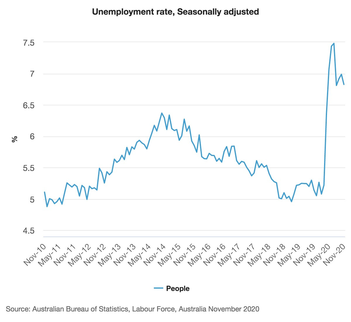 Data released by the Australian Bureau of Statistics on Thursday morning shows the nation’s unemployment rate fell from 7.0 to 6.8 per cent over the month.